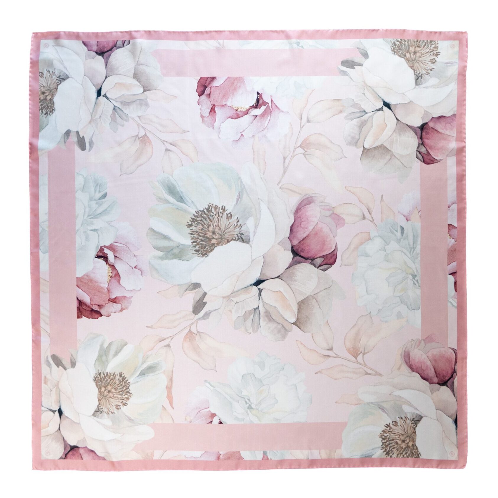 ‘Colette’, a creation from Ceci Johnson, exudes an aura of grace and elegance. With a soothing soft pink border, it frames a garden of hand-painted flowers cast in an array of delicate hues. Your personalized message is subtly integrated into this floral ensemble, giving it a personal touch. Showcased here is a 90x90cm (approx. 35.4×35.4 in) Organic Silk Twill scarf.