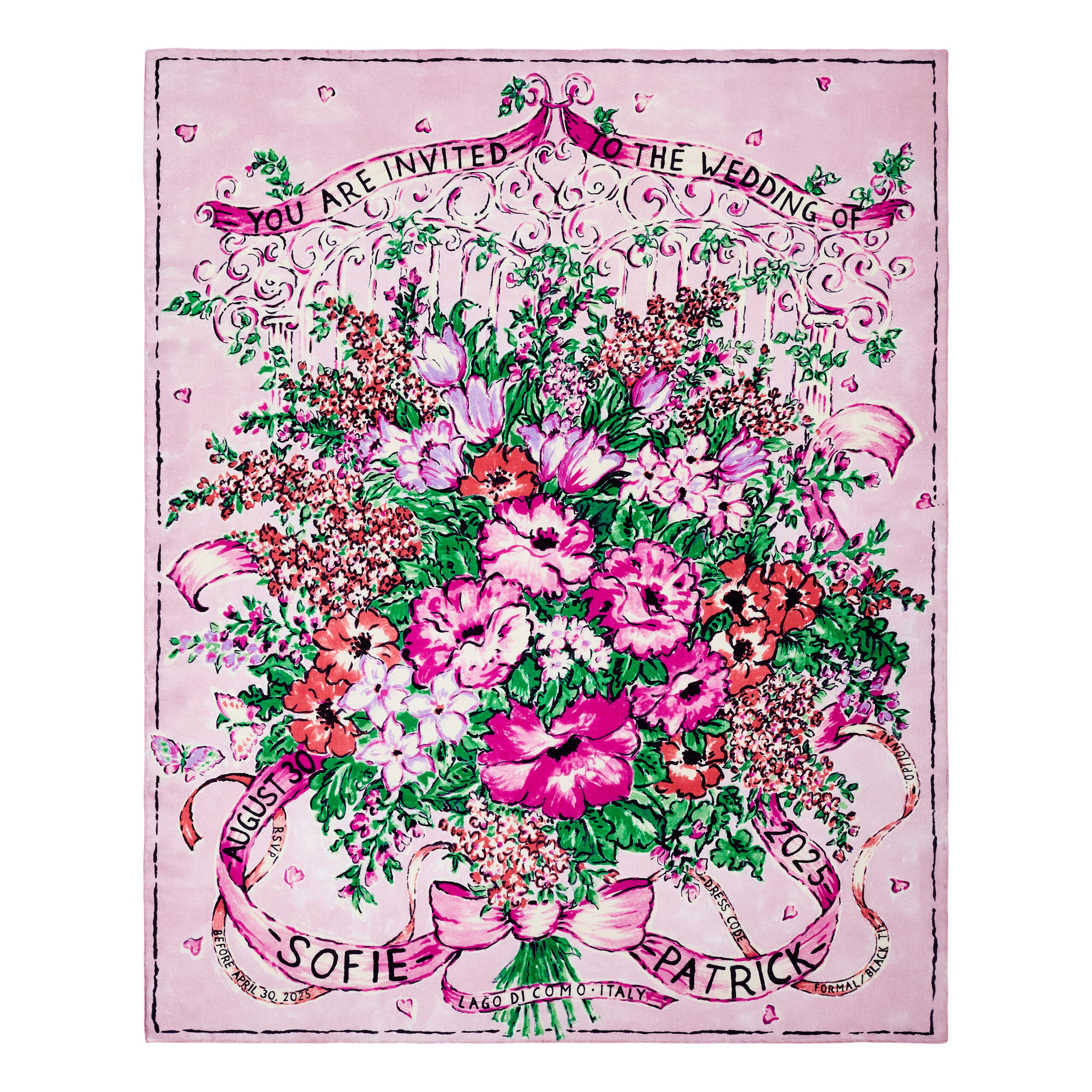 Experience the grace of the ‘Lago di Como Pink’ scarf, a sentimental creation by Erich Biehle, mirroring the design made for his son’s wedding at Lake Como. Personalize this silk satin scarf with your own text, and make it a one-of-a-kind treasure. Measuring 70x90cm (approx. 27×35 in), it’s a statement of feminine elegance. The model is wearing the scarf in silk satin. As a perfect pair, consider the matching Lago di Como pocket square. Also available in the original enchanting blue variation.
